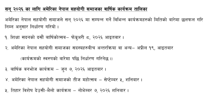 As we look ahead, let us continue to work together to create a prosperous, proud, and self-reliant Nepali community in the United States.